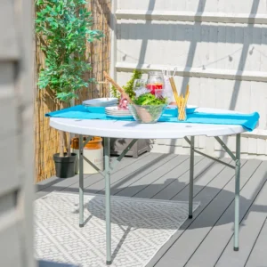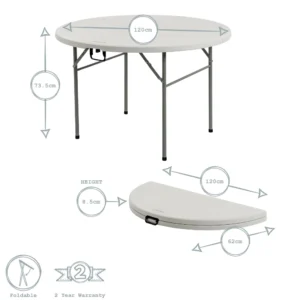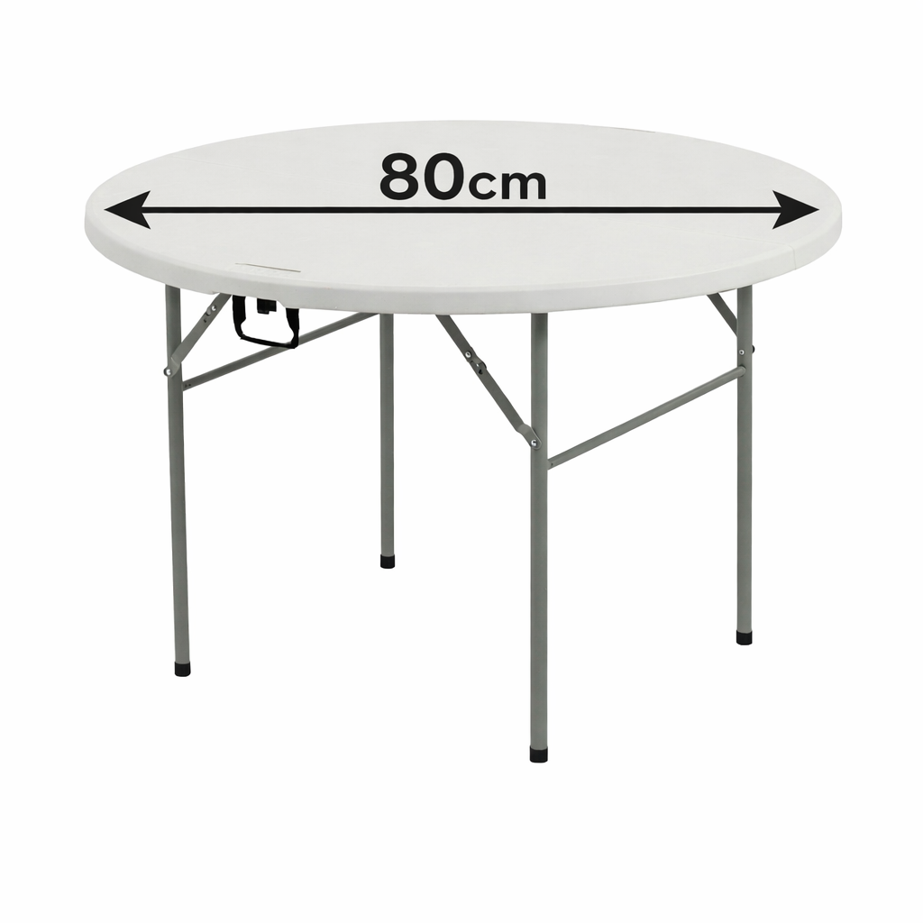 Hire a white round table for flexible event use. Available in two sizes, it works well for guest seating or as a display table for cakes, centrepieces, gifts or signage.