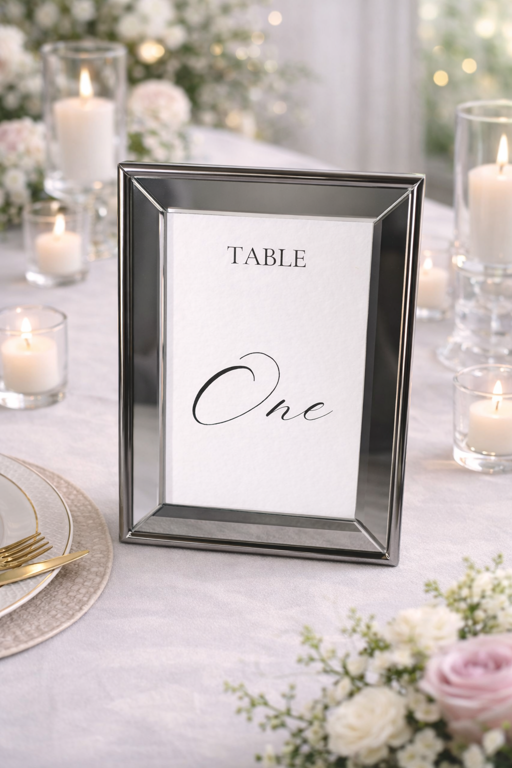 Silver framed table number for elegant and organised wedding or event seating.
