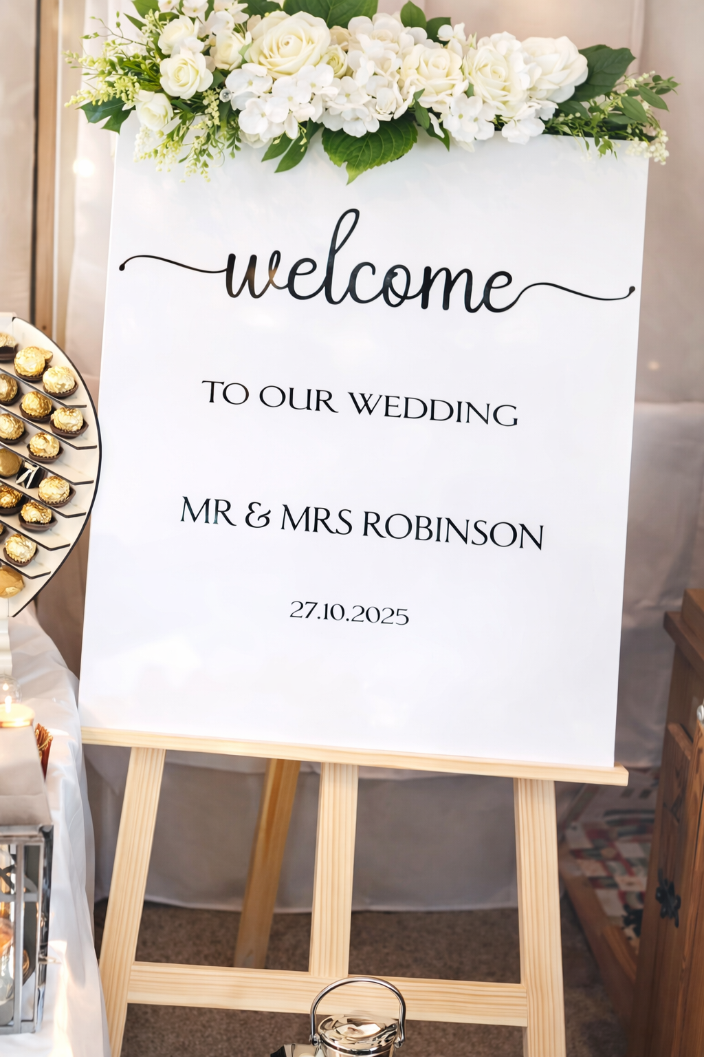 Ideal for entrances and reception areas, the sign can display names, dates or custom wording to suit your occasion.