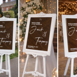 Supplied with a matching easel and personalised lettering, it provides a refined and photo ready focal point from the moment guests arrive.